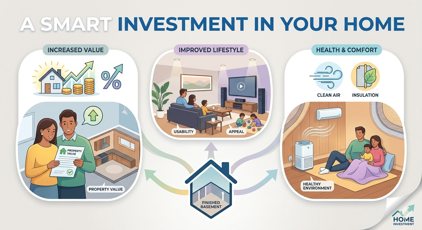 Renovating your basement not only improves your lifestyle but also increases your property value. A well-designed and properly insulated basement can significantly enhance the usability and appeal of your home.